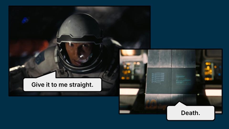 Secondly, Matthew Mcconaughey is having a difficult time in space and asks his robot friend to give him the truth, the whole truth and nothing but the truth!