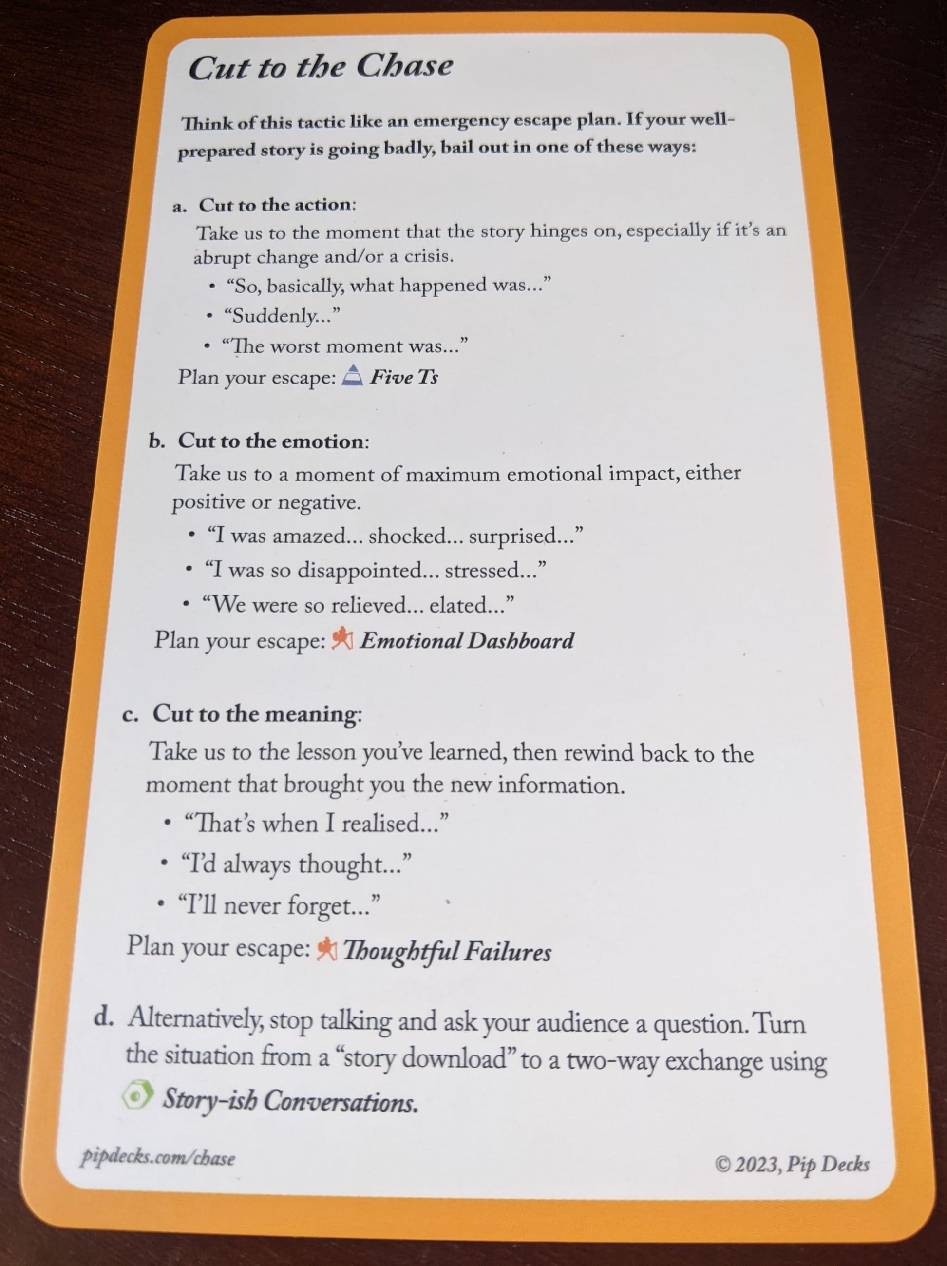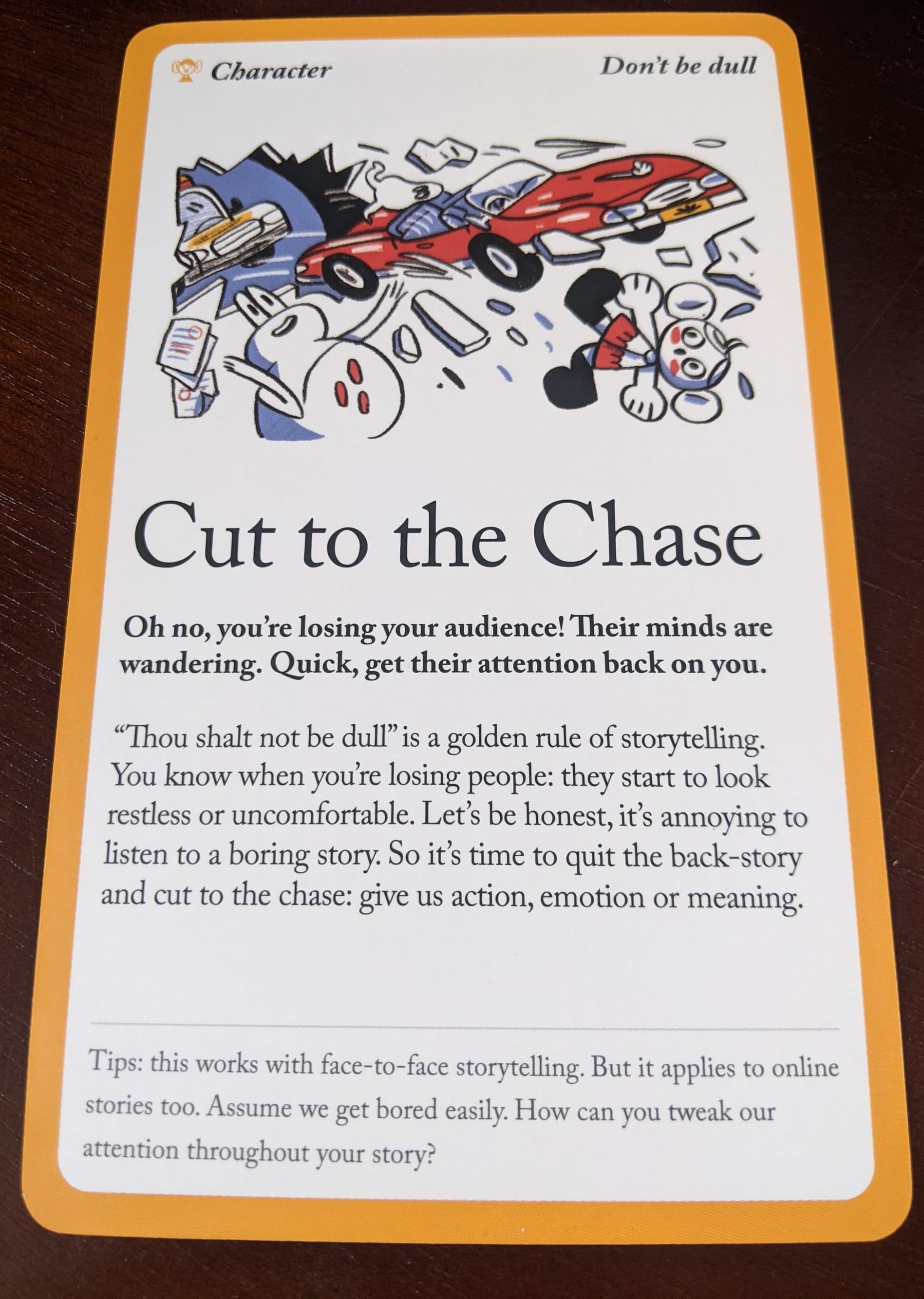The idea for this resource came from a deck of cards, called Storyteller Techniques: 'Ditch dull presentations. Tell great stories'. I think on this occasion, I'll let the card do the talking.